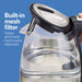 La bouilloire en verre à température variable Hamilton Beach offre une ébullition rapide grâce à sa puissance de 1500 watts. Vous pourrez vous préparer plusieurs tasses sans avoir à réchauffer l'eau, car la fonction maintien au chaud préserve sa température. La bouilloire Hamilton Beach propose des températures préréglées pour les thés délicats, verts, blancs, oolong et noirs, le café à la française et le chocolat chaud. Chauffez l'eau à la température souhaitée d'une simple pression sur un bouton et préparez vos boissons chaudes préférées en toute sérénité. Cette élégante bouilloire de 1,7 litre est fabriquée en verre borosilicate durable pour une performance optimale et est équipée d'un arrêt automatique et d'une protection contre la surchauffe pour une utilisation en toute tranquillité. Pratique et sans fil, elle facilite le service à table. Son couvercle à grande ouverture, également par simple pression sur un bouton, simplifie le versement et le nettoyage. Le filtre à mailles du bec verseur retient les dépôts de calcaire et l'enrouleur de cordon, ajustable à la longueur idéale, facilite le rangement et garde votre plan de travail bien rangé.