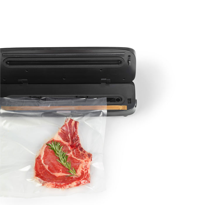 Préservez vos aliments plus longtemps avec la scelleuse sous vide RICARDO. Facile à utiliser, elle élimine l’air et scelle vos sacs pour éviter les brûlures de congélation et le gaspillage. Offrant 3 modes pratiques (sec, humide et manuel), elle s’adapte à tous vos besoins, y compris la cuisson sous vide. Compacte et puissante (130 W), elle comprend un coupe-sac intégré, un ramasse-gouttes amovible et des sacs de deux tailles. Un indispensable en cuisine!